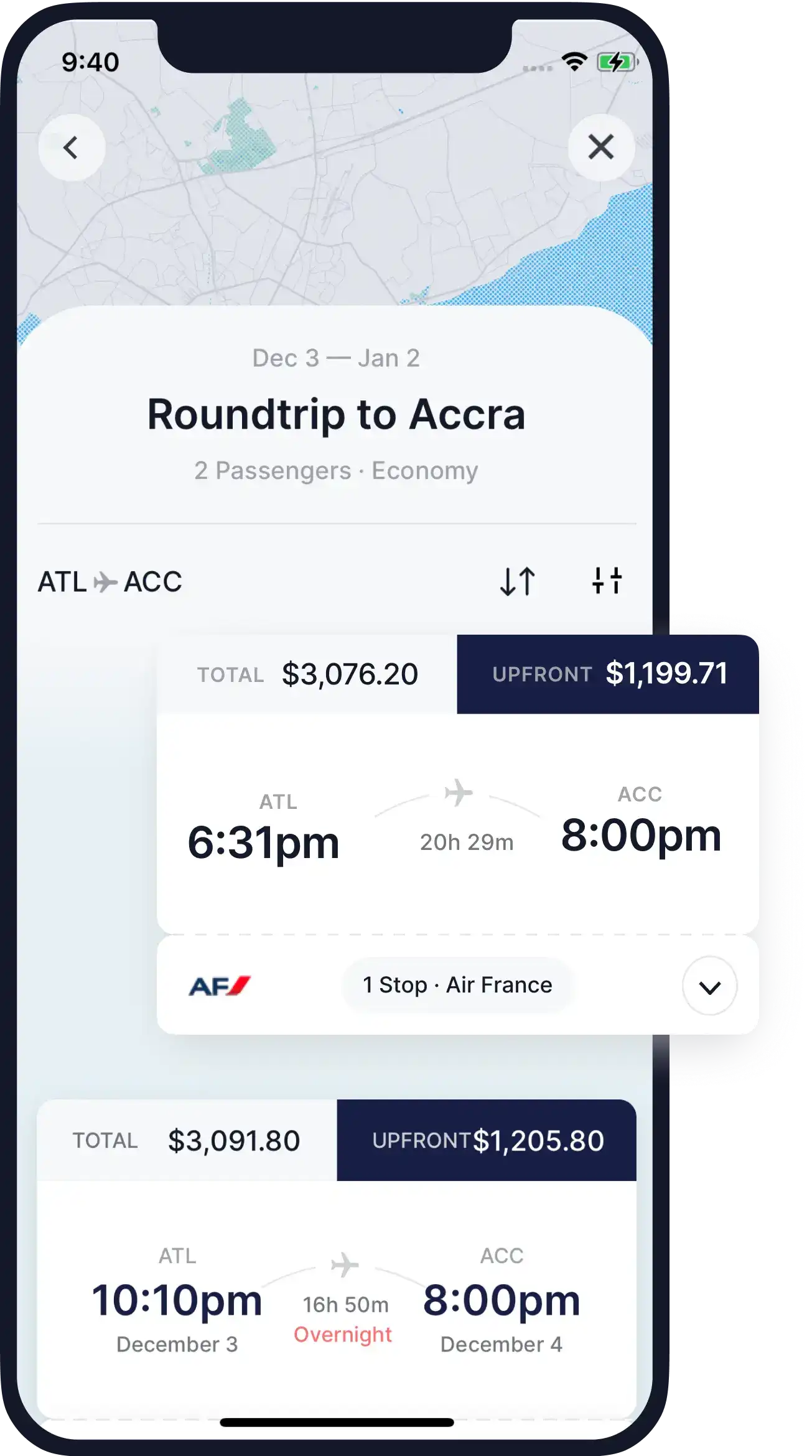 Pay only a fraction upfront for your flights. You will receive your e-ticket once the final payment is made. No gimmicks. No hassle. Just accessible travel for your needs.